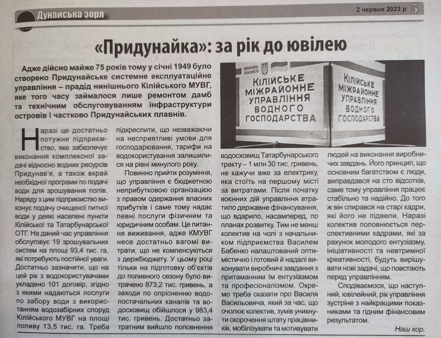 У підготовчий період до поливного сезону-2023 керівництвом та провідними спеціалістами управління, відповідно до своїх повноважень та кваліфікації, здійснюються виїзні перевірки стану підготовчих робіт на каналах, гідротехнічних спорудах, насосних станціях меліоративних систем Кілійського МУВГ.