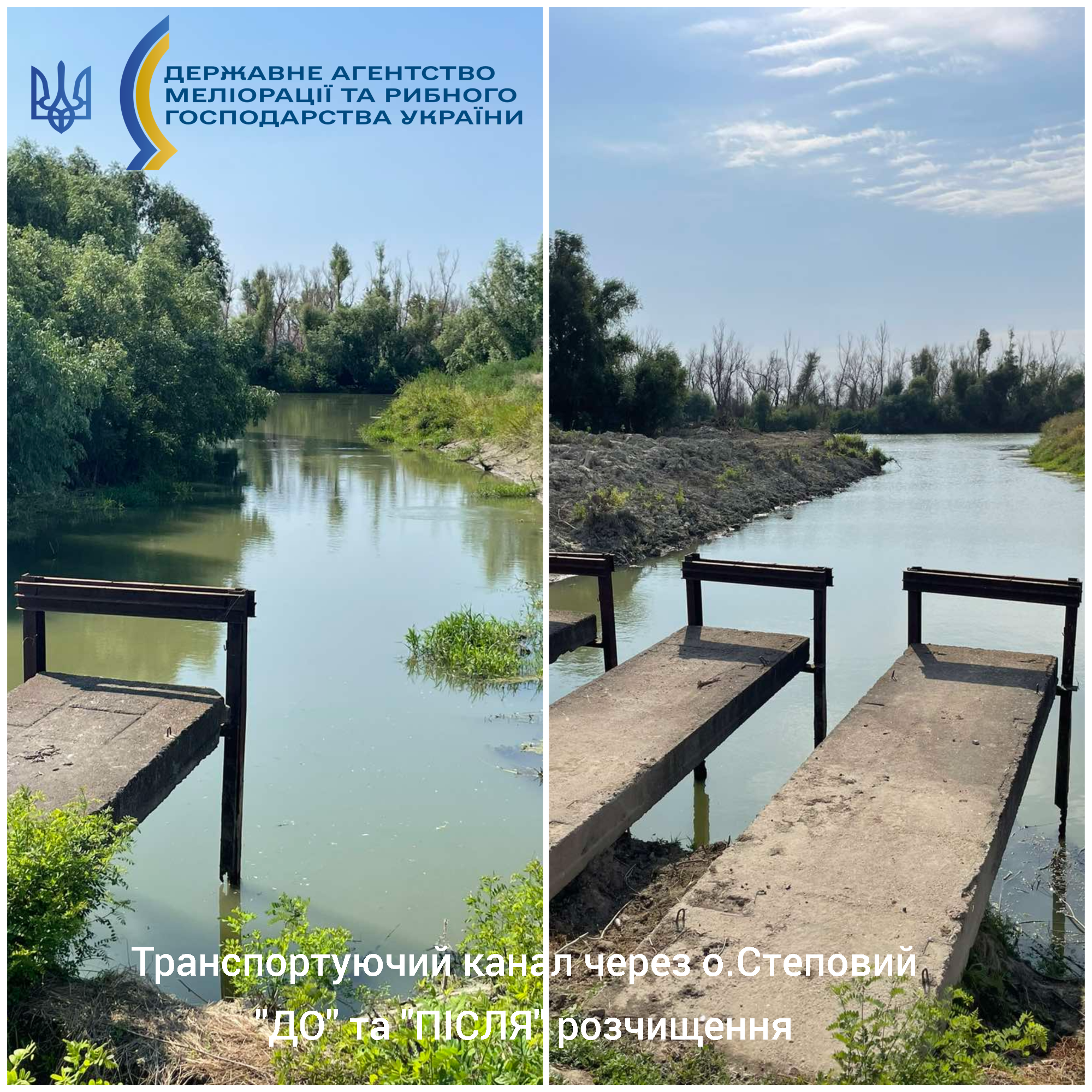 проводиться ручне та механічне очищення каналів Р-2 та МК від порослі та очерету (Кілійська ЕД с.Мирне).