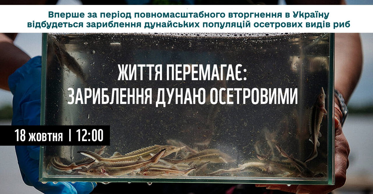 18 жовтня 2023 року о 12:00 у м. Вилково Одеської області, в рамках проекту «Rewilding joint workplan – WWF Ukraine» та на виконання положень Плану дій щодо збереження осетрових риб в Україні на 2021-2030 роки відбудеться зариблення річки Дунай осетровими видами риб. У заході візьмуть участь представники Мінагрополітики, Держрибагентства, Міндовкілля, WWF-Україна, Дунайського біосферного заповідника НАН України, Одеського осетринницького комплексу та громадськість. Подробиці згодом